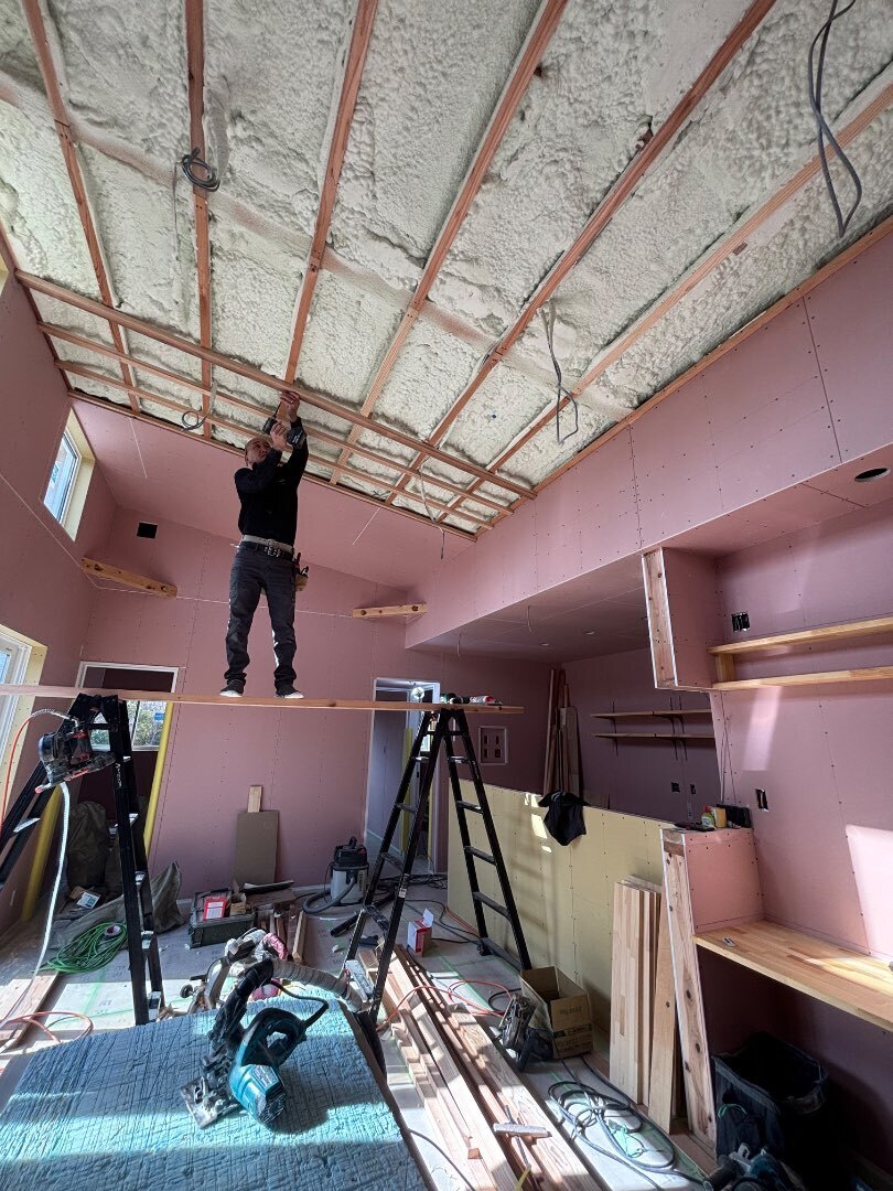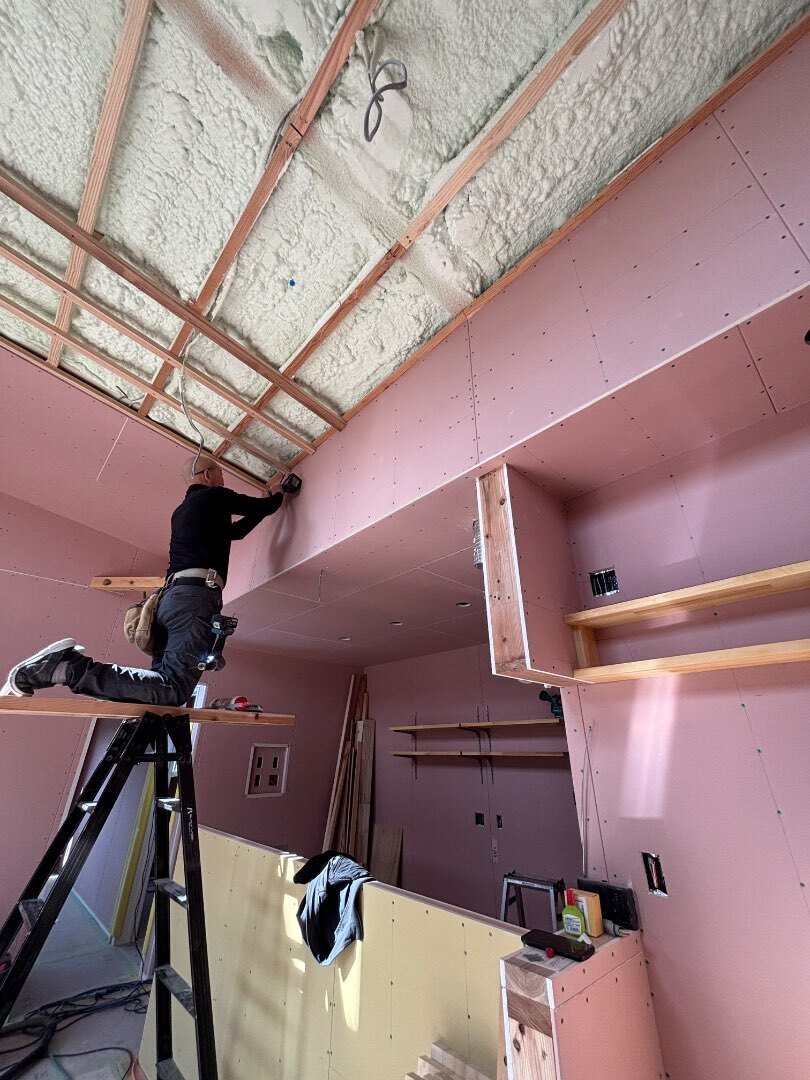 天井のボード貼り工事してます👨🏻🦲